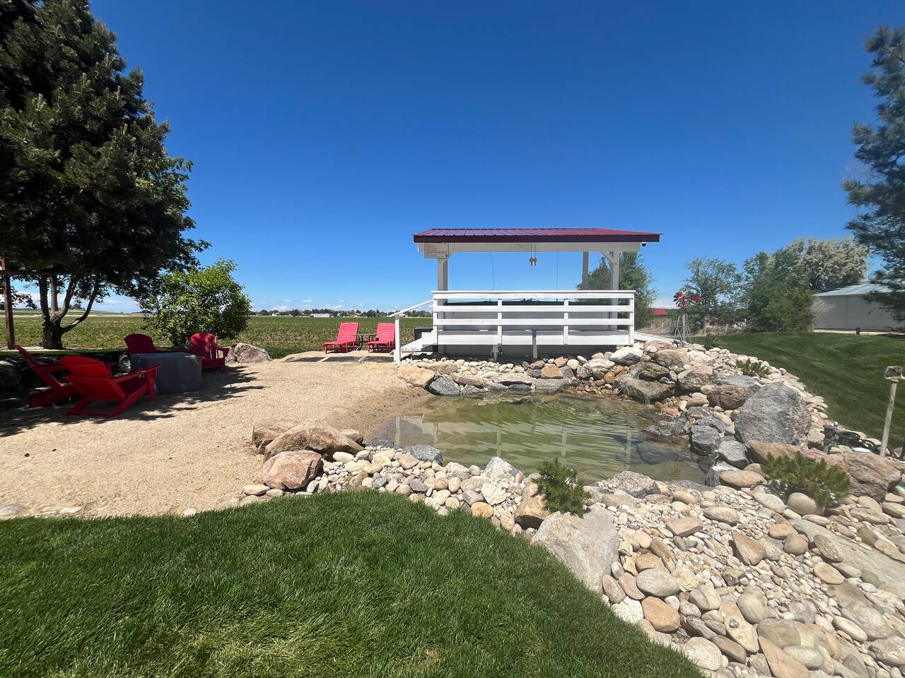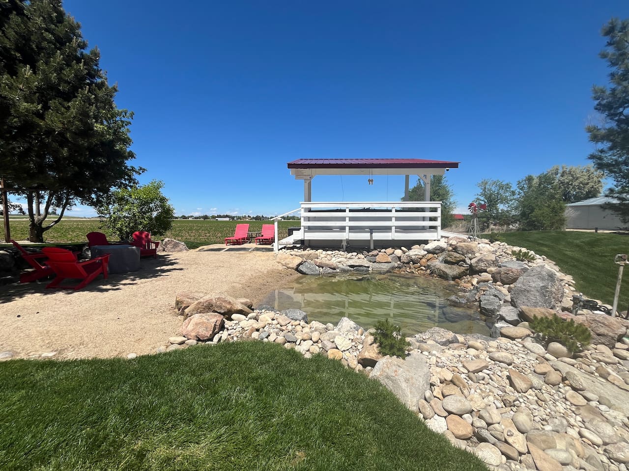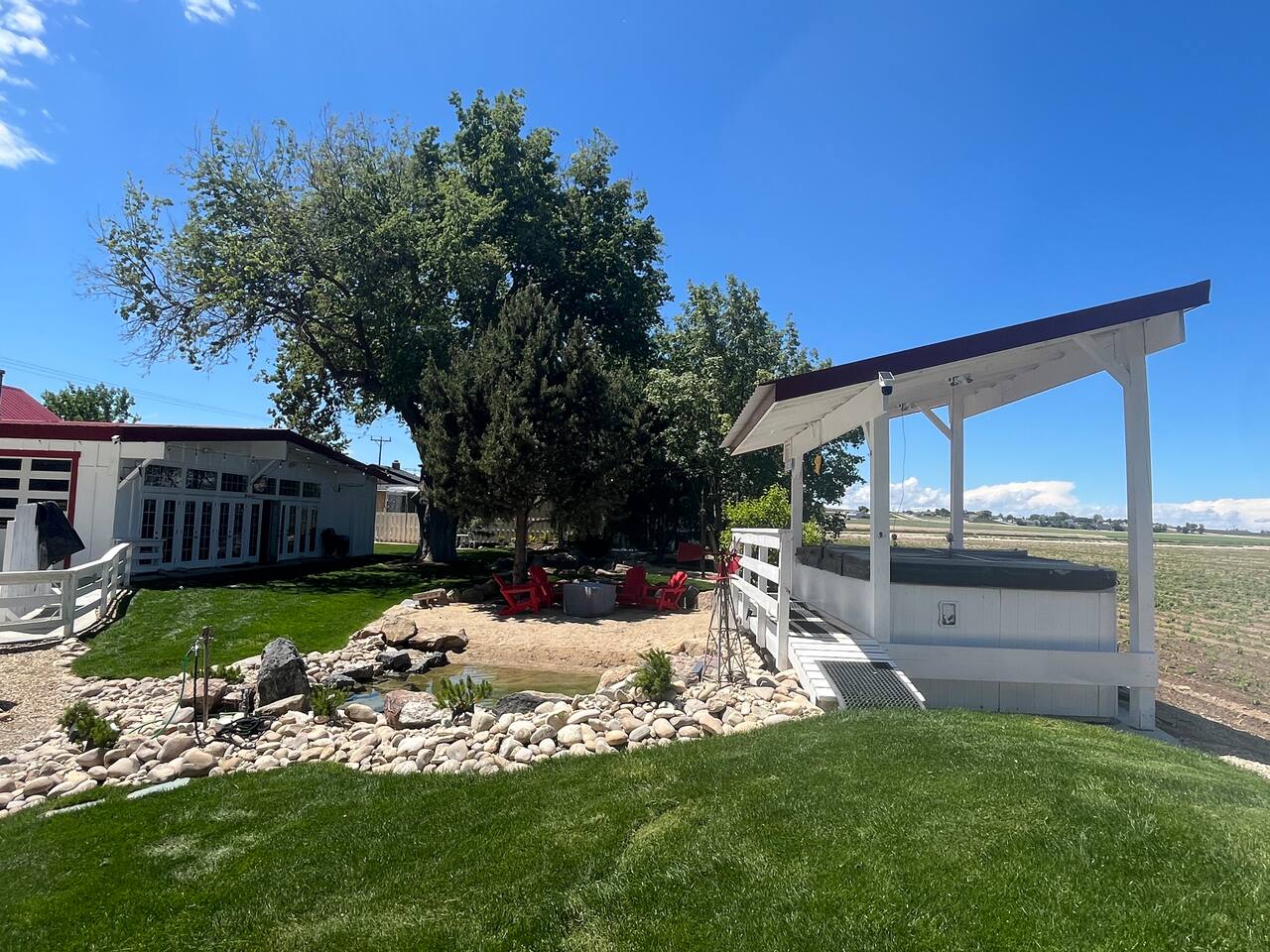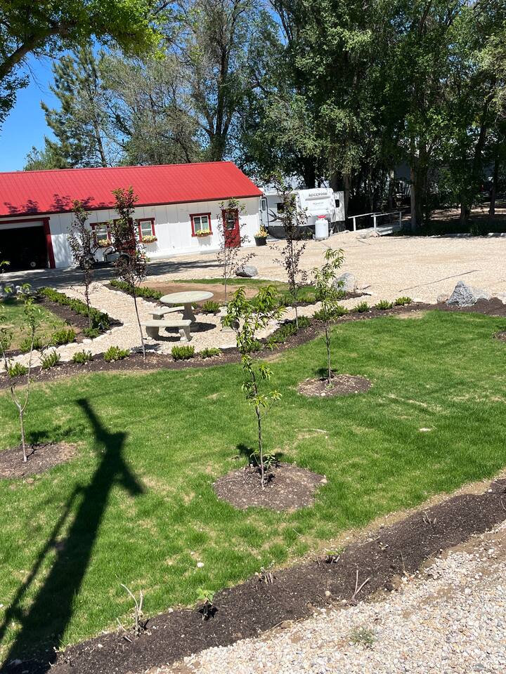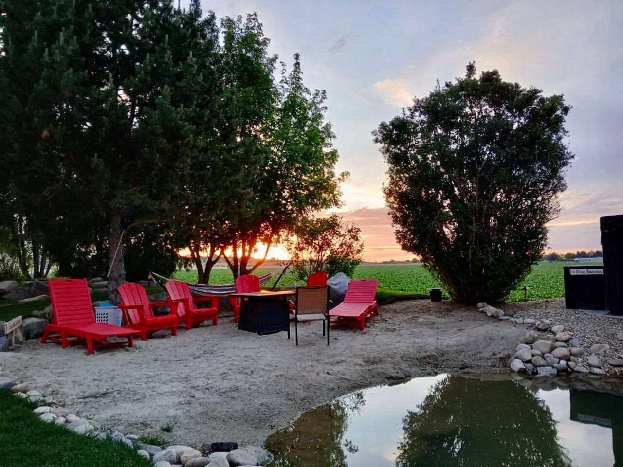 Charming country cottage in a peaceful rural setting, perfect for a romantic escape or quiet getaway. Relax in the hot tub, on the mini beach, or by the pond with a waterfall. Enjoy sunsets from the fire pit or private patio, with evening lighting and the sounds of wild birds all around. Just 2 minutes to Lake Lowell for fishing, boating, and nature walks, and only 20 minutes to mountains, hot springs, trail rides, the Snake River. All while only 9 minutes from shopping & services.