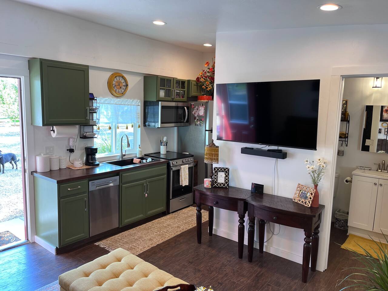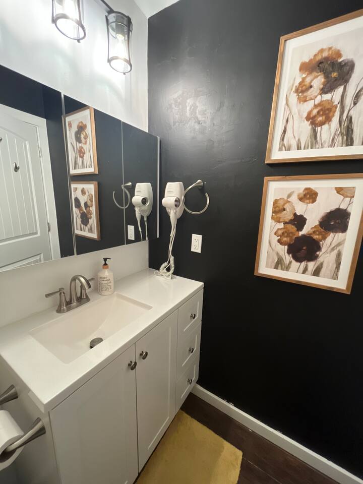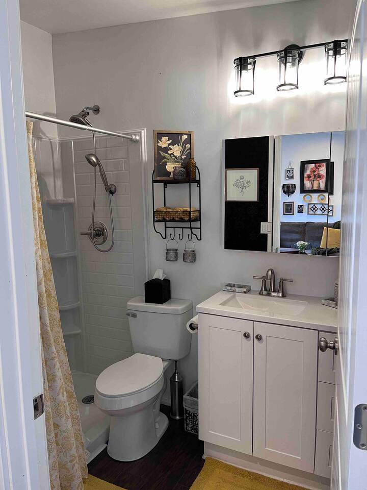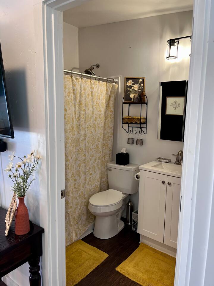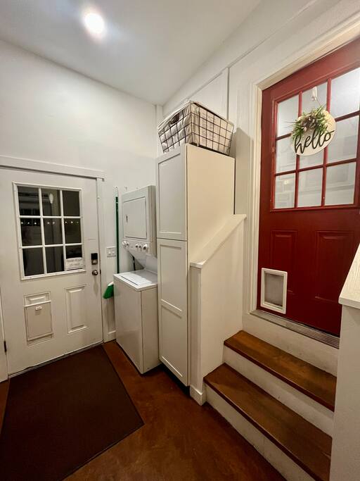 You will have access to: gas fire pit on mini beach, cold plunge pond with waterfall, 12 person hot tub, Adirondack chairs and recliners on sand, in-ground trampoline, tetherball, hammock, private patio set outside your bungalow back door. Foyer laundry, parking lot, hot tub, cold, plunge pond, mini beach, fire pit are shared spaces. Since laundry facilities are shared, They may not always be available based on occupancy. To avoid a potentially awkward situation for you, Please reach out to Host to check availability before use