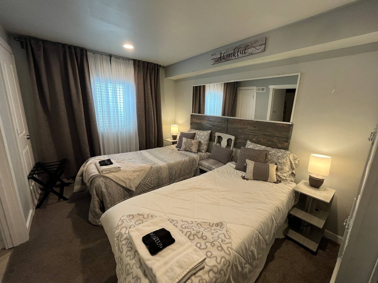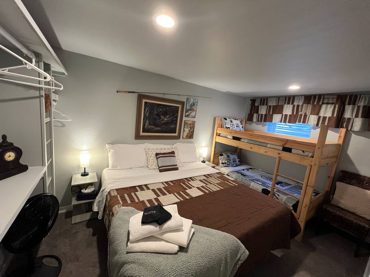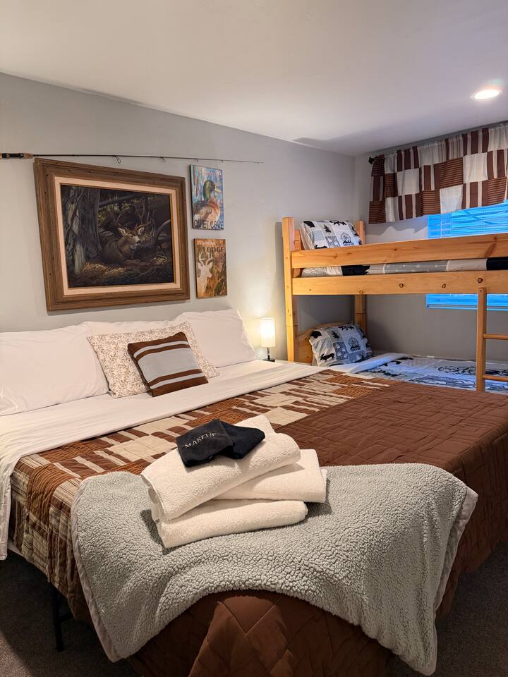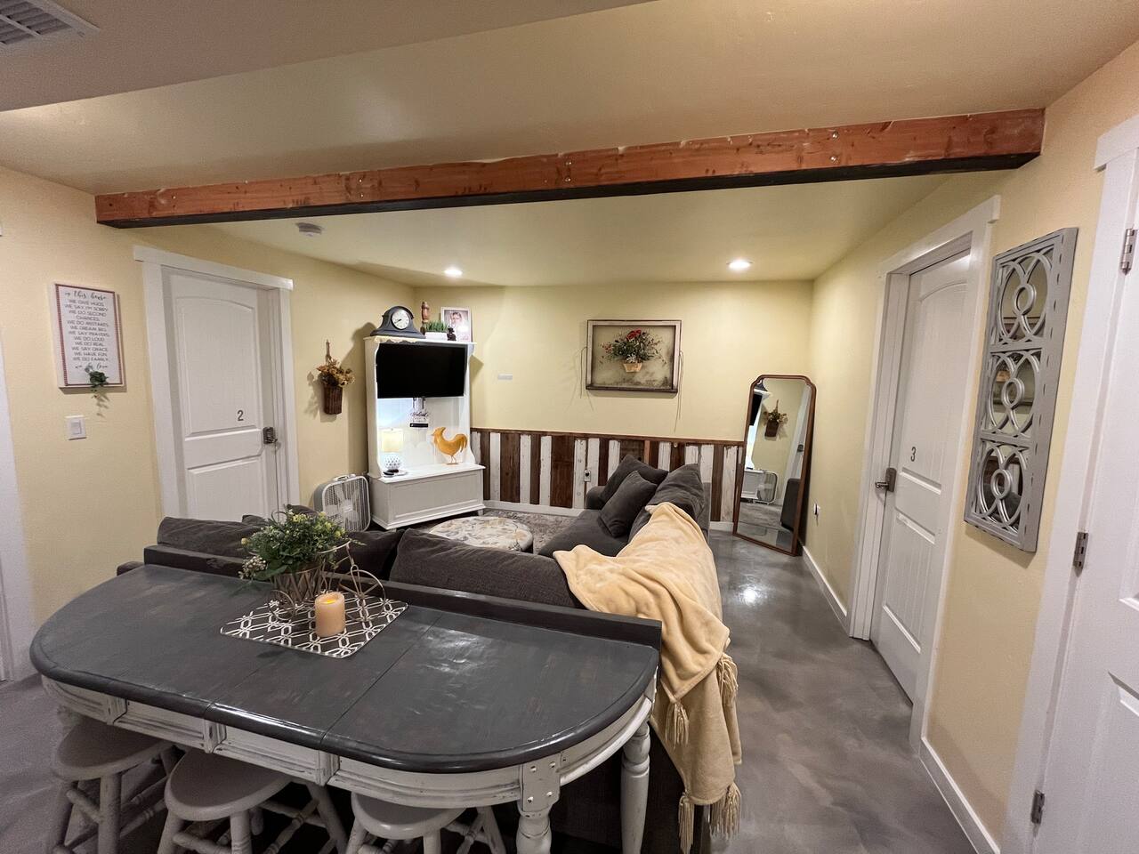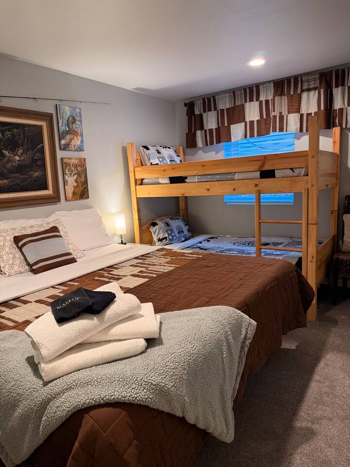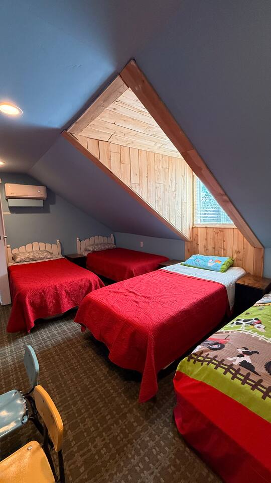 Each bedroom includes a keypad lock, desk, lamp, fan, power strip, hangers, luggage rack, 2 pillows, 2 towels, and fresh linens. All beds and pillows have extra liners for cleanliness. The basement apartment offers 2 full baths, a living room, a full kitchen, and a flexible bed configuration—choose 1 king or 2 XL twins. The loft features 9 beds (4 can convert to kings), a full bath, pack-and-play, foam pads under beds, and toys/books in under-bed drawers. We tailor bed setups to your group’s needs—just ask! The Red Roof Farmhouse is highly customizable and perfect for gatherings. Groups over 27 require a custom quote. We also offer onsite rentals for larger parties. Every stay is quoted based on total occupancy and use, so please inquire before booking to ensure your stay is tailored perfectly for you. We’re happy to provide a detailed custom quote for your unforgettable experience.