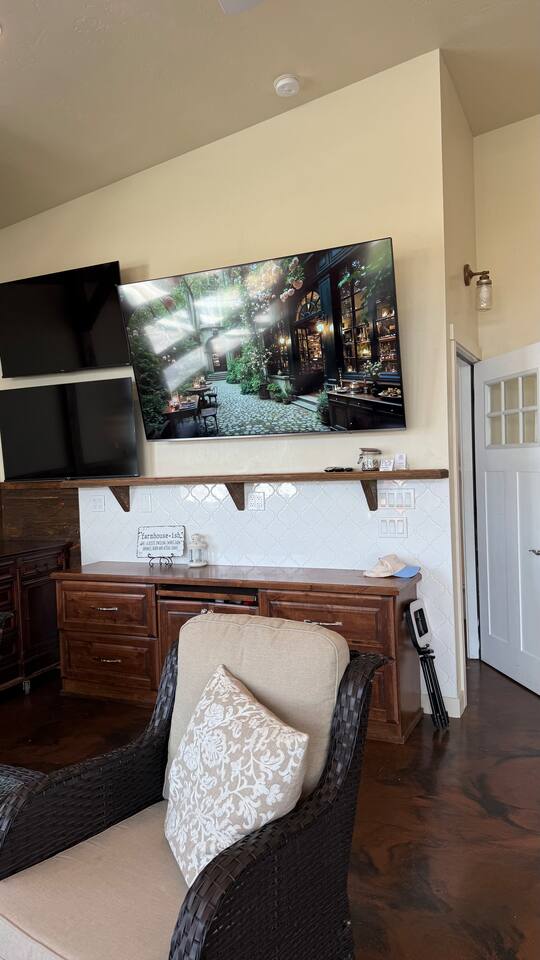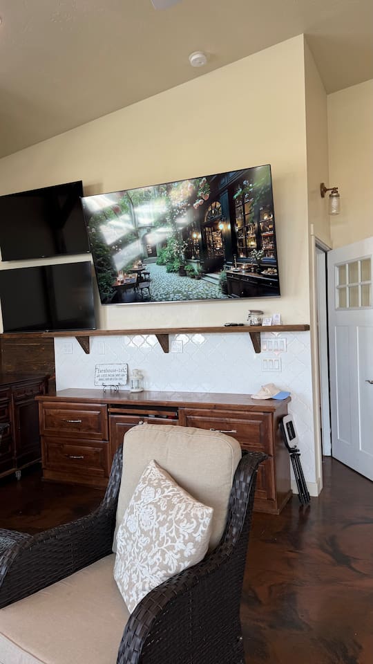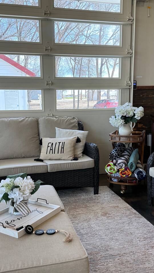 Wedding groups or guests with similar intinerary must pay additional host services at an added $1000 charge. + Parking over 14 cars have an added $250 charge so we can rent additional parking from the neighbor. Note parking lines. + Overnight guests over 27 people have an added charge of $10 per person. + guest count can not be over 40. Violations to the above will incur a fee double the charge. The swim spa is professionally cleaned on Mondays. The grounds are professionally groomed on Thursdays. The mattresses and pillows have extra liners to keep them fresh and clean for each guest and are also professionally cleaned. No smoking, vaping, tobacco, illegal drugs, or hard liquor allowed on the property anywhere. violation will incur $400 charge. There is a smoking area on the backside of the property toward the creek. This is for the safety of guest. No one is allowed to walk up and down the street. Too dangerous. Standard quiet times followed. (10:30 pm - 8:00 am Outdoor lighting and country setting makes this lodging rather magical. Several outdoor areas as well as the large indoor space with 2 walls that completely open up making it an opulent indoor / outdoor experience.
