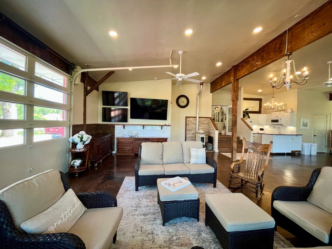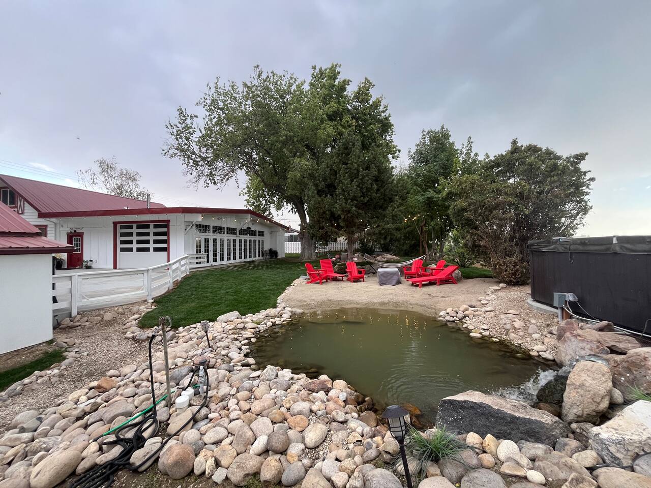 Escape to our renovated 100-year-old farmhouse—perfect for retreats, reunions, and team getaways! Sleeps 18, with 2 kitchens, 12-person hot tub, cold plunge pond, fire pit, trampoline, and 1300 sq ft gathering space and game room. Surrounded by open fields, sunsets, and songbirds you’ll love the zen that thrives here. You’re welcome to host up to 40 guests for an event. Message us for a custom quote—beds for up to 33 available onsite!.